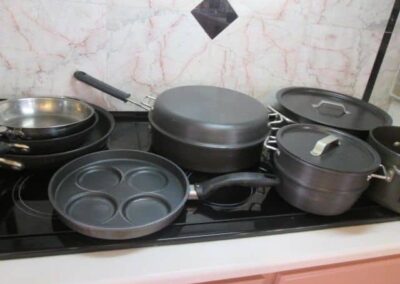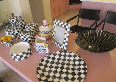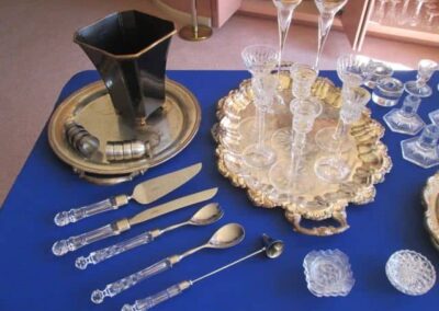 - Kitchen Ware: Small Appliances, Cook & Bakeware, Wok, Copper Molds, Ramekins, Cast Iron, Stainless & Silver Plate, Punchbowl Set, Cutlery, Glassware, Serving Items, Ice Bucket on Stand, Pitchers