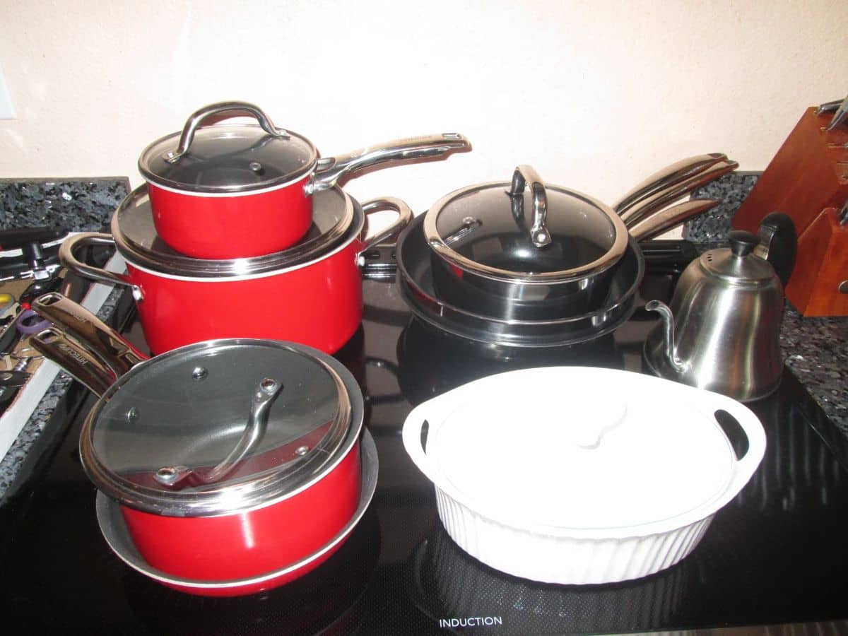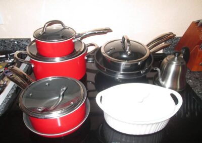 - Pots & Pans (Orange with Glass Lids), Small Appliances including Blue Keurig